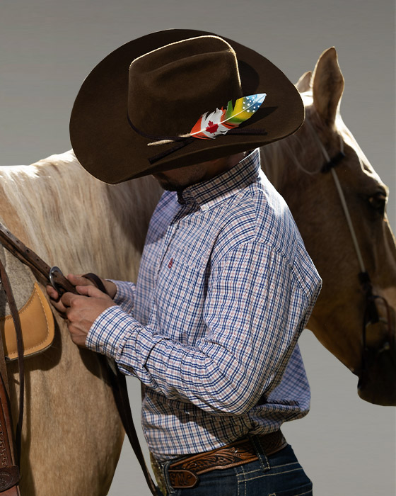 A Linha Journey, celebra a incrível trajetória de Filipe Masetti, conhecido como o Cavaleiro das Américas — o mais jovem do mundo e o único brasileiro a cruzar as Américas a cavalo. Inspirada em sua jornada épica do Brasil ao Canadá, a coleção traz chapéus na forma Horse, confeccionados em Feltro 100% Lã, Palha Bangora e Palha 30X. Cada modelo carrega um detalhe especial: penas personalizadas que representam os países percorridos — Brasil, Estados Unidos e Canadá — simbolizando coragem, liberdade e a conexão com a natureza.